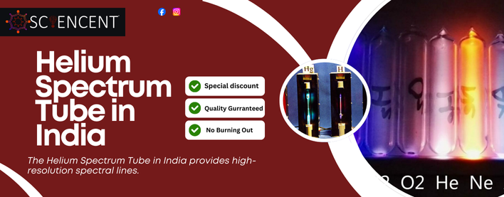 A Helium Spectrum Tube in India is a specialized glass tube filled with helium gas at low pressure. When an electric current is passed through the tube, it excites the helium atoms, causing them to emit light. This emitted light is then analyzed through a spectroscope or a diffraction grating, revealing the unique spectral lines characteristic of helium.